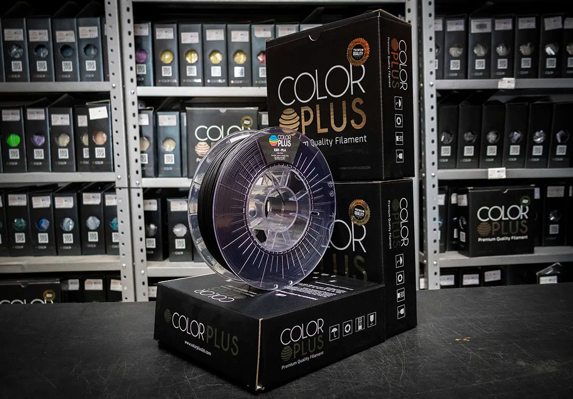 El filamento PLA ESD (Electro Static Discharge) de ColorPlus está diseñado para aplicaciones donde es crucial la disipación de cargas electrostáticas, ideal para componentes electrónicos o entornos industriales sensibles. Su base de PLA lo hace fácil de imprimir, manteniendo una buena rigidez y resistencia mecánica, mientras que sus propiedades ESD lo diferencian de los filamentos PLA comunes. Requiere condiciones de almacenamiento y secado específicas, lo que garantiza resultados óptimos y duraderos en cada impresión.